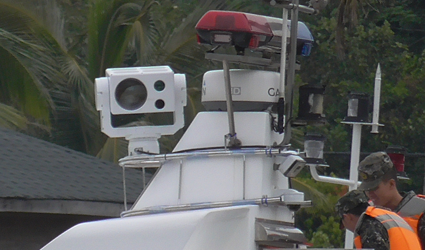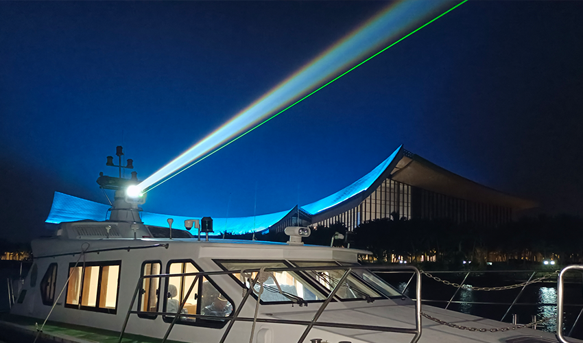 军用/警用舰船对周界目的搜索跟踪、执法取证、强光探照、激光眩目等功效,可对可疑危险目的举行忠言、驱离和眩目拒止。