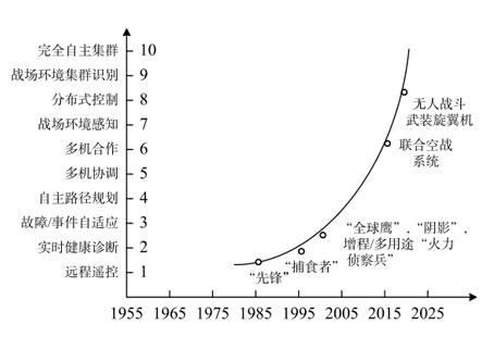 ÃÀ¹ú¿Õ¾üÑо¿ÊµÑéÊÒÓÚ2000ÄêÌá³öÁËÕë¶ÔÎÞÈË»ú×ÔÖ÷×÷Õ½µÄ¿´·¨£¬²¢¶ÔÎÞÈË»úµÄ×ÔÖ÷ˮƽ¾ÙÐÐÁËÁ¿»¯½ç˵£¬Öƶ©ÁËÉú³¤ÍýÏë¡£ÎÞÈË»ú×ÔÖ÷ˮƽÁ¿»¯ÄÚÈÝÓëÉú³¤½×¶ÎÈçͼ2Ëùʾ¡£