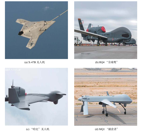 2003Ä꣬ÃÀ¹ú½«¿Õ¾üºÍˮʦµÄÎÞÈË×÷Õ½·É»úϵͳÏîÄ¿ºÏ²¢£¬Æô¶¯Á˓͎áÎÞÈË×÷սϵͳ”£¨J-UCAS£©ÏîÄ¿£¬×îÏÈÁ˶ÔÎÞÈË×÷Õ½·É»úX-47BµÄÑо¿¡£2006Ä꣬ÃÀˮʦÌá³öÁ˓ˮʦÎÞÈË×÷Õ½º½¿Õϵͳ”(N-UCAS)ÏîÄ¿£¬Ö¼ÔÚΪº½Ä¸½¢ÔØ»úÁª¶ÓÒýÈëÎÞÈË×÷Õ½·É»ú£¬²¢¼ÌÐø¶ÔX-47B¿ªÕ¹Ñо¿¡£ÔÚ2012—2014Äê¼ä£¬ÓÖ¶à´ÎÍê³ÉÁ˺½Ä¸µ¯É䡢׎¢¡¢´¥½¢¸´·ÉµÈÊÔÑ飬²¢ÓÚ2015ÄêÍê³ÉÁË×ÔÖ÷¿ÕÖмÓÓÍÊÔÑé¡£X-47B¹¥»÷ÐÍÎÞÈË»úÊÇÒ»¿î¿ÉÒÔ×ÔÖ÷ʹÓá¢ÒþÉíÐÔÄܺÃÇÒÊÊÓÃÓÚ½»ùºÍ½¢ÔصÄÎÞÈË×÷Õ½·É»ú£¬¾ß±¸¸ßº½³ÌºÍ¸ßº½Ê±µÄÌØµã£¬×°±¸ÓÐÕÕÉäÀ×´ï¡¢¹âµçÖÆµ¼ÏµÍ³ºÍ¿×¾¶À×´ïµÈÏȽøµÄ´«¸ÐÆ÷£¬Ö÷Òª¹¦Ð§°üÀ¨Ç鱨Õì̽¡¢Ä¿µÄ×·×Ù¡¢µç×ÓÕ½×ÌÈÅ¡¢»ðÁ¦¹¥»÷µÈ¡£ÃÀ¹úÑÐÖÆµÄÆäËû¿ÕÖÐÎÞÈËϵͳ£¬Èç“È«ÇòÓ¥”¡¢“²¶Ê³Õß”¡¢“ÁÔÈË”ºÍ“´óÎÚÑ»”µÈÒ²ÒÑÔÚ¾ü¶Ó·þÒÛ£¬Èçͼ3Ëùʾ¡£