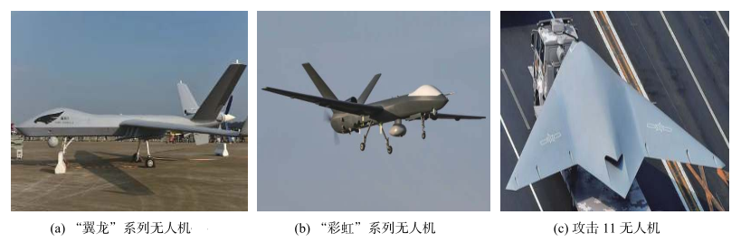 ÔÚ¿ÕÖÐÎÞÈËϵͳ·½Ã棬³É¶¼·É»ú¹¤Òµ¼¯ÍÅÑÐÖÆµÄ“ÒíÁú”ϵÁÐÎÞÈË»ú¾ßÓÐÈ«×ÔÖ÷ˮƽÆð½µÄÜÁ¦¡¢Ñ²º½º½ÐÐÄÜÁ¦¡¢åÐңЭͬÄÜÁ¦ÓëµØÃæ½ÓÁ¦¿ØÖÆÄÜÁ¦µÈ£¬´îÔØÓжàÐ͹âµç/µç×ÓÕì̽װ±¸ÒÔ¼°Ð¡ÐÍåÐң׼ȷ¹¥»÷ÎäÆ÷£¬¿ÉÒÔÖ´ÐÐÇ鱨Õì̽¡¢Ä¿µÄ¸ú×Ù¡¢»ðÁ¦¹¥»÷µÈʹÃü¡£ÎÒ¹úÑÐÖÆµÄ“²Êºç”ϵÁÐÎÞÈË»ú¾ßÓÐÖпճ¤º½Ê±µÄº½ÐÐÄÜÁ¦£¬¿ÉÒÔ´îÔØµç×Ó×ÌÈÅϵͳÓë¶àÖÖÎäÆ÷ϵͳ£¬ÄÜÖ´ÐлðÁ¦¹¥»÷¡¢Ç鱨Õì̽¡¢Í¨Ñ¶×ÌÈÅ¡¢µç²¨×ÌÈŵÈʹÃü£»ÑÐÖÆµÄ¹¥»÷11ÐÍÎÞÈË»ú¾ßÓм«Ç¿µÄÒþÉíÄÜÁ¦£¬¿ÉÒÔ´îÔØ×¼È·µÄÖÆµ¼µ¼µ¯£¬ÓÃÓÚÖ´ÐжԵع¥»÷ʹÃü¡£ÎÒ¹ú¿ÕÖÐÎÞÈËϵͳÈçͼ5Ëùʾ¡£