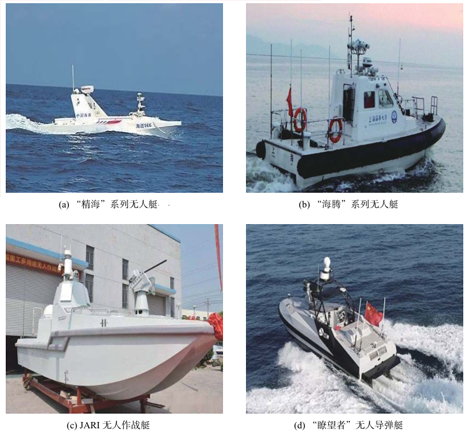 ÔÚº£ÑóÎÞÈËϵͳµÄË®ÃæÎÞÈËϵͳ·½Ã棬Óɹþ¶û±õ¹¤³Ì´óѧǣͷÑÐÖÆµÄ“ÌìÐÐÒ»ºÅ”ÎÞÈËͧ£¬½ÓÄÉÓ͵ç»ìÏý¶¯Á¦£¬×î¸ßº½ËÙÁè¼Ý92.6km/h£¬×î´óº½³Ì1000km£¬ÎªÏÖÔÚÌìÏÂÉÏ×î¿ìµÄÎÞÈËͧ¡£¸ÃͧÈÚºÏÁË×ÔÖ÷¸ÐÖª¡¢ÖÇÄÜ¿ØÖÆ¡¢×ÔÖ÷¾öÒéµÈÊÖÒÕ£¬¿ÉÒÔʵÏÖ¶ÔÖÜÎ§ÖØ´óÇéÐεĿìËÙÌ¬ÊÆÐÅÏ¢ÈÏÖªÓëΣÏÕ¹æ±Ü£¬¿ÉÒÔÓÃÓÚÖ´ÐÐÆøÏóÐÅÏ¢¼à²â¡¢µØÃ²²â»æ¡¢¾¯½äѲÂß¡¢Ç鱨Õì̽¡¢»ðÁ¦¹¥»÷µÈʹÃü¡£ÓÉÉϺ£´óѧÑÐÖÆµÄ“¾«º£”ϵÁÐÎÞÈËͧ¾ßÓаë×ÔÖ÷ÓëÈ«×ÔÖ÷µÄ×÷ÒµÄÜÁ¦£¬¿ÉÒÔÖ´ÐÐÄ¿µÄÕì̽¡¢º£Ñó²â»æ¡¢Ë®Öʼì²âµÈʹÃü¡£ÓÉÉϺ£º£Ê´óѧÑÐÖÆµÄ“º£ÌÚ01”ºÅÖÇÄܸßËÙÎÞÈËͧ£¬´îÔØÓкÁÃײ¨À×´ï¡¢¼¤¹âÀ״ǰÊÓÉùÄŵȴ«¸ÐÆ÷£¬¿ÉÒÔÖ´ÐпÉÒÉÄ¿µÄ¼àÊÓ¡¢Ë®ÏÂÕÉÁ¿¡¢º£ÉÏËѾȵÈʹÃü£¬¾ß±¸È«×ÔÖ÷Óë°ë×ÔÖ÷º½ÐÐÄÜÁ¦¡£½­ËÕ×Ô¶¯»¯Ñо¿ËùÑз¢µÄJARIÖÇÄÜÎÞÈË×÷սͧ£¬´îÔØÓйâµç̽²âÆ÷¡¢ÖÜΧÏà¿ØÕóµÈ̽²â×°±¸£¬Í¬Ê±£¬»¹´îÔØÓе¼µ¯ÓãÀ×µÈÎäÆ÷ϵͳ£¬¿ÉÒÔÖ´ÐÐÇ鱨ËѼ¯¡¢µÐÇéÕì̽¡¢¾«×¼»ðÁ¦¹¥»÷µÈʹÃü¡£ÓÉÖéº£ÔÆÖÞÖÇÄܿƼ¼ÓÐÏÞ¹«Ë¾µÈµ¥Î»ÍŽáÑÐÖÆµÄ“²tÍûÕߢò”ÎÞÈ˵¼µ¯Í§£¬´îÔØÓÐÈ«×ÔÖ÷ÎÞÈ˼Ýʻϵͳ¼°µ¼µ¯µÈÎäÆ÷£¬¿ÉÒÔÖ´ÐеÐÇéÕì̽¡¢Ç鱨ËѼ¯¡¢¾«×¼»ðÁ¦¹¥»÷µÈʹÃü¡£ÎÒ¹úº£ÑóÎÞÈËϵͳÈçͼ6Ëùʾ¡£