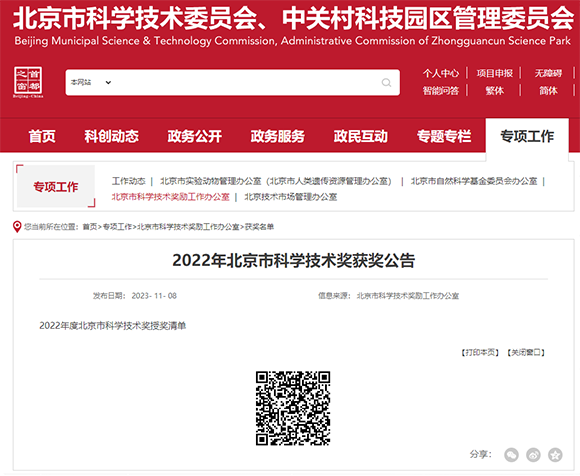 北京市科学手艺奖是由北京市人民政府设立的奖项,对为科学手艺前进、科技立异中心建设、首都经济社会生长作出突出孝顺的科技职员和组织给予奖励。